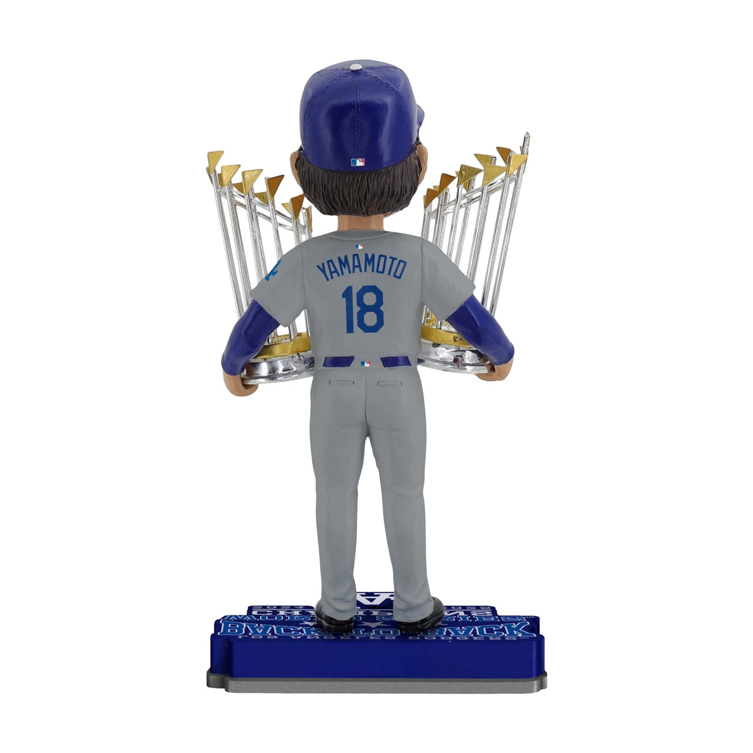 Celebrate greatness with this Yoshinobu Yamamoto Los Angeles Dodgers Back-to-Back World Series Champions Bobblehead. Featuring Yamamoto in the Dodgers’ road gray uniform holding two championship trophies, this collectible captures the dominance and historic run of one of baseball’s most electrifying superstars.