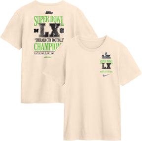 Seattle Seahawks Super Bowl LX Champions Long Ball Natural T-Shirt - S is backordered and will ship as soon as it is back in stock.