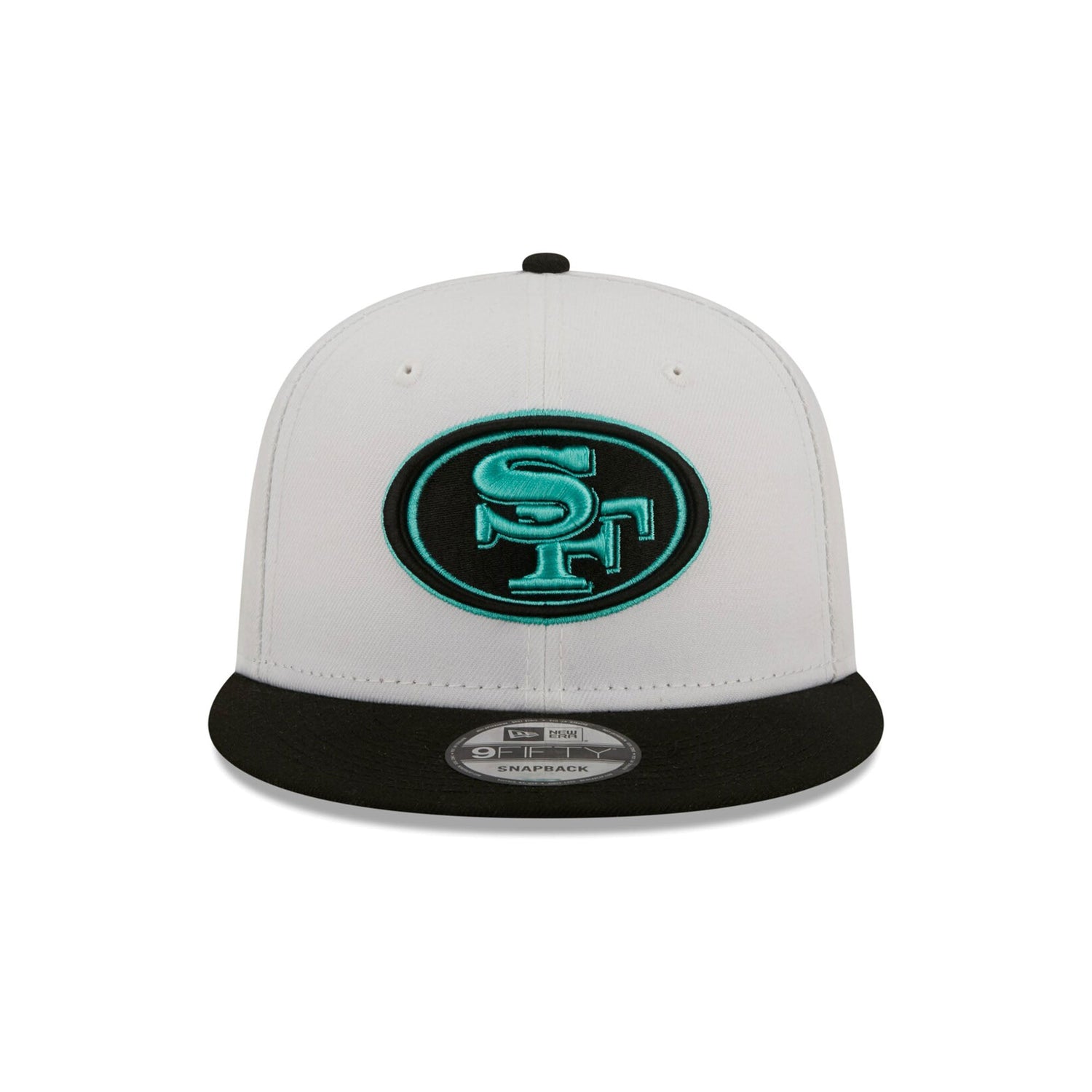 Stand out from the entire Niners fanbase with this San Francisco 49ers Two-Tone Teal 9FIFTY Snapback from New Era. Featuring a crisp white crown, sleek black visor, and a bold teal-outlined SF oval logo, this hat brings a fresh alternate look to a classic team design. Perfect for collectors, streetwear fits, or any fan who wants something different than the usual red & gold.